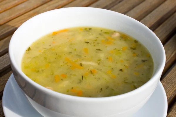 - Podsmaż cebulę na maśle, dodaj pokrojone warzywa i zalej bulionem.